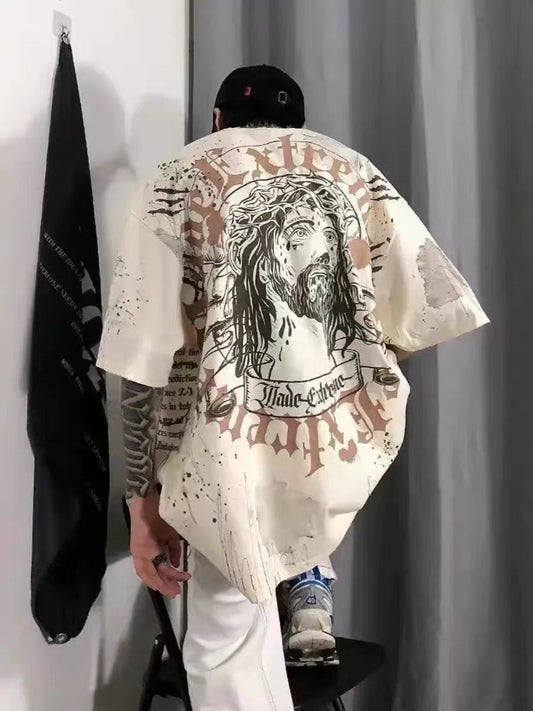 This is a washed and distressed Gothic retro-style short-sleeve shirt.